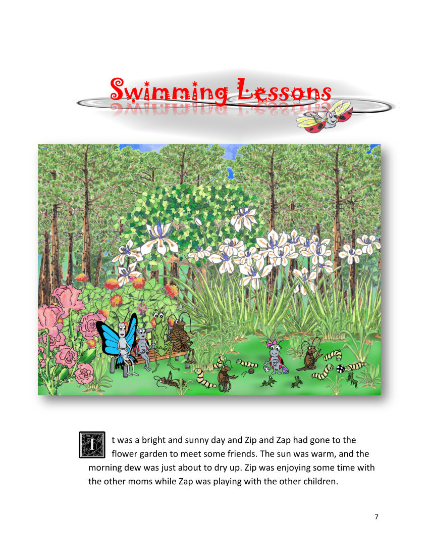 When Wendy the Waterbug suggests that Zip and Zap meet her and her children at the pond for an afternoon swim, Zip thinks it's a great idea. It's only after they arrive that she realizes that Zap doesn't know how to swim. There's no shortage of teachers at the pond, but can Zap learn to swim?