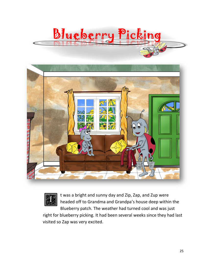 It's a big day for Zap as they head to Grandma and Grandpa Meadows house to pick blueberries. Zap eats about as many as she picks and before long she's tired and needs a nap. But then, a big yellow bird thinks that she is blueberry.